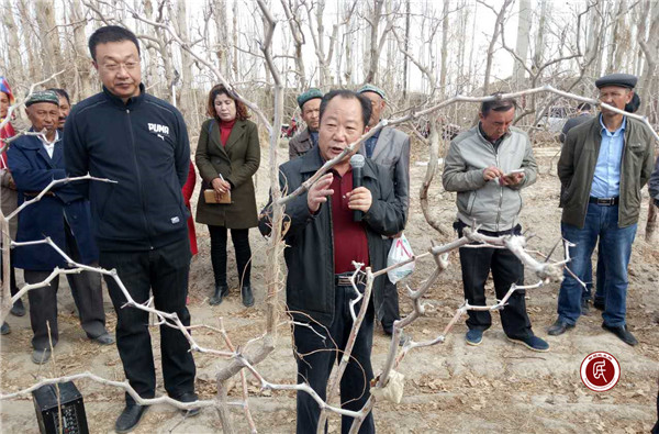 新疆民生网讯 (通讯员 徐新霞)3月28日,巴州农业局驻且末镇科台买社区工作队积极响应且末县委、县政府的号召,充分发挥工作队队员的科技优势,将科技知识送到田间地头,利用春耕时节为村民上了一堂别开生面的科技种田及红枣果园管护技术专题课。