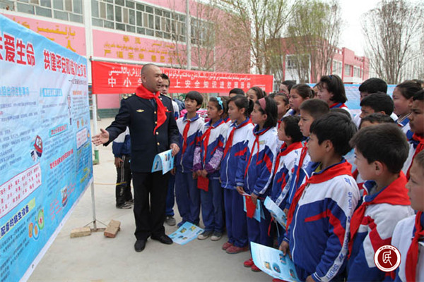 新疆民生网讯(通讯员 玉素甫江·玉素因 阿迪力江·阿布都克里木)3月28日是“全国中小学生安全教育日”,当日,自治区交通运输厅驻岳普湖县岳普湖乡喀拉玉吉买村工作队发挥行业优势,带着救生衣、救生圈、小学生水上安全教育读本走进岳普湖乡中心小学,为该校300余名师生上了一堂生动的水上安全知识课。活动以“水上平安交通,安全伴我成长”为主题,旨在普及小学生水上安全自救知识和技能,提高水上出行安全意识。