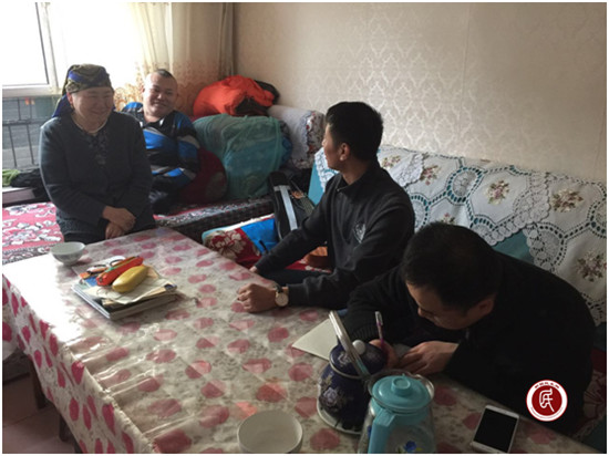 爬着一栋一栋的楼,敲开一户又一户的家门,对于一直坐在办公室里办公的队员们,入户可是件体力活,边走边交流着入户的情况,就来到了红旗小区1号楼1单元的一户居民家门口。工作队员们敲了敲门,开门的是个小女孩,进门后就看到一位瘫痪的维吾尔大哥躺在床上,工作队看了看台帐,心想这应该就是阿不都·米吉提了。米吉提小时候患严重小儿麻痹导致两腿瘫痪,这也影响了他就业,目前只能一直待业在家。正和米吉提聊着天,一位步履蹒跚的阿姨从房间里走了出来,她就是米吉提的母亲阿米娜汗。工作队一边登记着基础信息,一边和母子俩聊着天,原来阿米娜汗和老伴因为脑溢血和脑梗才出院回家,两个女儿都出嫁了不在身边,家里没有任何经济来源,一家四口只能靠低保生活。
