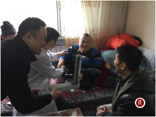 考虑到米吉提行动不便,工作队到社区卫生服务中心把米吉提及家人体检报告取回来,并带着慰问品来到米吉提家。看到工作队,米吉提就像看到了家人一样,很是开心。和米吉提一起研究着体检单上的各项指标,现血压和心律等都存在问题,工作队就主动协调卫生服务中心医生到米吉提家里进行复检。不一会,社区医生就带着简单的器械来到了米吉提家,为他们一家进行复检,并留下了一些药品,一一交代了如何服用。