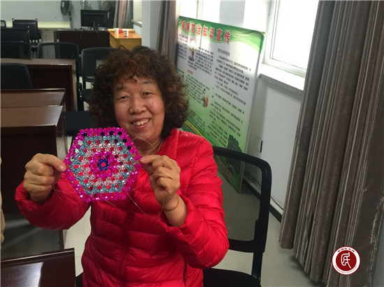此次培训班为期三天,培训采取理论授课与实践操作相结合的方式进行, 培训内容涉及串珠、绢花、丝网花等。为了使学员尽快掌握手工编织的技巧,老师为她们悉心讲解编织的基本知识及配色,面对面传授编织手法、技巧等编织技术,授课方法灵活多样,学员们边学边请教,学习效果显著,编织作品受到了社区工作人员及老师的一致好评。看着自己亲手编织的手工艺品,学员们脸上露出了幸福的笑容。辖区居民马秀梅高兴地说:“我之前就喜欢手工编织,平时主要靠自学,这次能参加培训班,由老师亲自教,对我帮助太大了,希望工作队能多举办这样的技能培训班。”