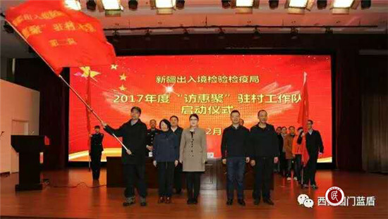 新疆检验检疫局驻察尔齐镇喀依库拉克村的驻村队员通过入户走访、农民夜校、升旗选举、村广播等方式向全体村民讲党恩,把党的“好声音”传播到基层的“末梢神经”,保证党的重要会议精神和好政策在第一时间被全体村民知晓,为维护稳定形势和加快农村同步小康建设提供强有力的物力智力保障。虽然地有远近,但是彼此期待新疆的和谐稳定、团结繁荣的心情是一样的。在走访到村民卡德尔·吾斯曼家中时,看到他还在自家围墙上写了“祖国统一好,中国共产党好!”来感恩党的关怀。