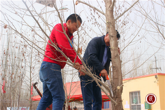 琼巴什村工作队帮助修剪村委会院内树木