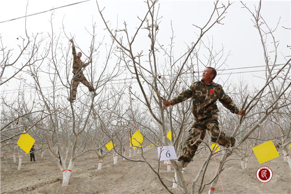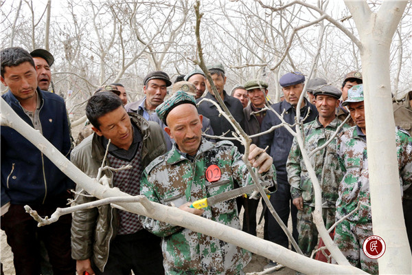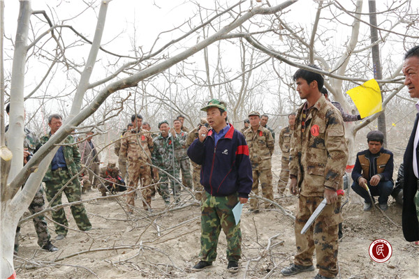 新疆民生网讯 (通讯员 颜寿林)3月29日,新疆温宿县林业局驻阿克喀尼克村访惠聚工作队组织农民技术员开展果树修剪大比武活动。