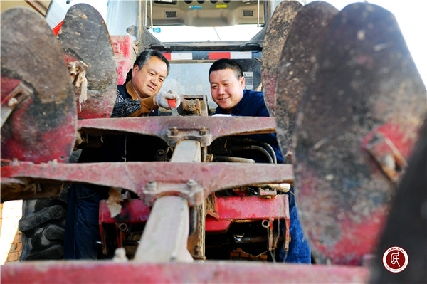 同样受益的还有村民刘振涛一家,工作队邀请来的“农机专家”为他的“东方红1304”进行了全面检查,发动机、水箱等部位一个不漏的进行了检修保养。“啥都不愁了,感谢你们。”看到“整装待发”的农机后刘振涛一边握着工作队队员的手一边高兴地说。