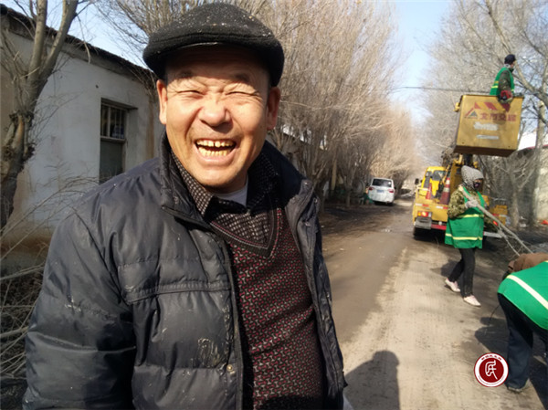 在修剪的过程中,很多村民都出来张望,向工作队投来赞许的目光。说得好不如做得好,村民的事无大小。在清真寺院内修剪工作得到了众多坊民的大力支持和赞许,清真寺阿訇马文新也和大家一起捡拾树枝。村民们看着优美的树冠,宽敞的巷道,明亮的房屋,都对工作队竖起了大拇指,村民马步文脸上露出了发自内心的笑容。