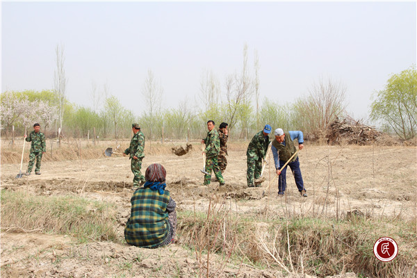 新疆民生网讯 (通讯员 杨亚杰)3月30日,阿山林管局驻阿依库勒镇阿克提坎村“访惠聚”工作队一行11人来到孤寡老人帕提汗·吐尔迪家,帮助老人完成春耕工作。