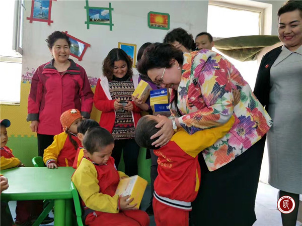 随后,哈斯也提·艾力来到尤喀克毛拉扎德村双语幼儿园,看望慰问自治区妇联双语支教老师及教职工,她刚踏进小班的教室,就传来小朋友们标准整齐的国语问候:“叔叔,阿姨,你们好!”依木然·买买提依明小朋友兴高采烈的跑过来与远道而来的哈斯也提·艾力紧紧相拥在一起。哈斯也提·艾力向小朋友们赠送了营养奶粉,并亲切询问了支教老师们的工作情况,鼓励大家当好辛勤的园丁,让农村的孩子养成良好的生活卫生和学习习惯,要将祖国好、家乡好、各民族团结一家亲的内容与国语教学相融合。支教老师曹荭:“请哈主席放心,我们会把幼儿园的每个孩子当成自己的孩子一样照顾和教育,不辜负组织对我们的信任和嘱托。”