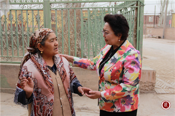 哈斯也提·艾力走访并慰问了群布斯村老党员吐尼沙·艾买提、村级“最美母亲”阿吉古丽·托呼提。阿吉古丽·托呼提是位单亲母亲,独自一人含辛如苦抚养三个孩子,尽管生活艰难无比,但从未放弃对他们的教育和培养,如今,两个孩子分别在乌鲁木齐市师范大学、职业大学念书,一个孩子高中在读。她流着泪拉着哈斯也提·艾力的手说:“感谢您来看我,最难的日子已经过去了,当初让孩子念书,就是为了以后做一个自食其力、对社会有用的人。”哈斯也提·艾力嘱咐工作队要经常来看看,多帮助这位平凡而伟大的母亲解决一些实际困难,自治区妇联副巡视员、驻镇群布斯村工作队队长、村第一书记马卫红一一记下;离开时,哈斯也提·艾力向阿吉古丽·托呼提赠送了礼物,并鼓励她继续教育好孩子,培养他们成才,她拉着哈斯也提·艾力的手久久不肯松开,一直送到村口。