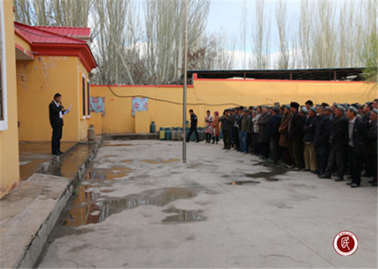2017年4月3日,在“升国旗、大宣讲”活动中,克州银监分局驻阿克陶县皮拉勒乡阿克提其村工作队向广大村民宣讲了发人省醒的《致广大柯尔克孜族牧民的一封信》。首先驻村工作队队长亚力坤·买买提向在场所有村干部和村民宣讲了《致广大柯尔克孜族牧民的一封信》的全部内容,要求所有村干部带头学习领会这封信的精神,在生活中切实发挥带头作用,用实际行动维护克州社会的稳定和长治久安。此外,工作队队长亚力坤·买买提同志号召在场村民积极向家人和朋友宣传这封信的内容,进一步认清15种极端主义的表现形式,增强责任感和使命感,进一步坚定政治立场,旗帜鲜明的与“三股势力”作斗争,用实际行动确保村内社会和谐稳定,为克州社会稳定和长治久安作出自己的贡献自己的力量。