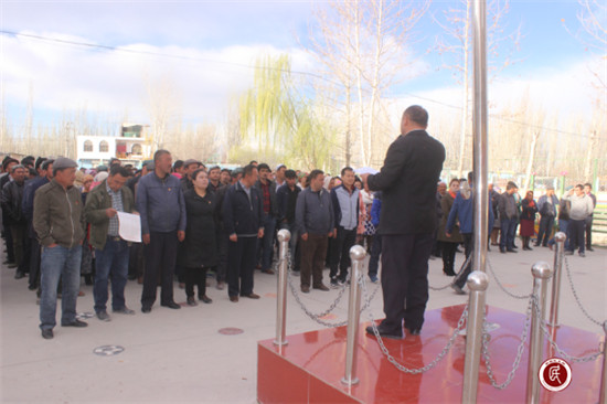 新疆民生网讯 (通讯员 方鑫)4月3日,克州林业局驻琼巴什村工作队以升国旗活动为契机,向广大村民宣传 “致广大柯尔克孜族牧民的一封信”,全村900余人了此次宣讲。 10点钟,伴随着嘹亮的国歌,五星红旗冉冉升起,待升国旗仪式完毕后,琼巴什村工作队副队长吐尔洪·吐逊同志向全体村民进行了宣讲,并对近年来在党的关怀下,新疆各族人民的生活翻天覆地的变化进行讲解,呼吁全体维吾尔族同胞要主动为维护社会稳定献言献策,发现情况及时报告,确保琼巴什村社会稳定。
