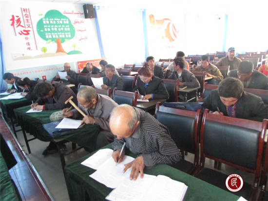 拜城县察尔齐镇吾斯塘布依村开展“学讲话、转作风、促落实”专项活动理论考试