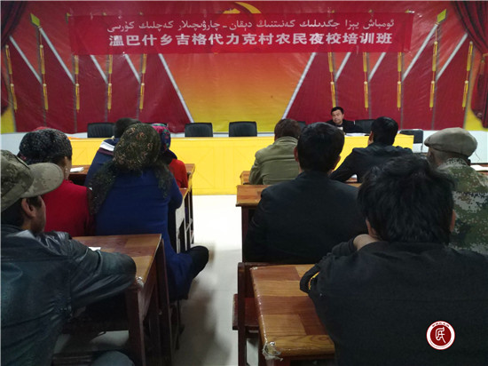 新疆民生网讯 (通讯员 周信)阿克苏地区畜牧兽医局(畜牧技术推广中心、草原工作站)驻拜城县温巴什乡吉格代力克村工作队积极做好宣传教育群众工作,发挥好“宣言书、宣传队、播种机”的作用,工作队精心组织,通过入户走访宣传、专题宣讲会、广播、农牧民夜校、国旗下宣讲、微信群、朋友圈转发等多种形式,让全村党员、干部、农牧民反复学习《关于授予吾布力卡斯木·买吐送同志优秀共产党员民族团结模范称号的决定》及他发表的《致维吾尔族同胞觉醒书》。近期工作队共开展宣传教育7场次,宣传教育群众2350人次,让民族团结的“春风”吹入每个群众家中,传入每位群众的耳朵里,感染每位群众的心田。