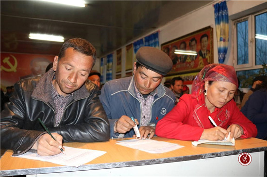 村民阿布拉·米吉提说:“看到自治区出台去极端化条例,我们觉得特别的好,这样能让更多的信教群众认清形势,远离宗教极端思想,做一个遵纪守法的好公民。我们也会通过自己所学的,让我的家人朋友更加了解极端化的危害,让他们远离这些极端思想。”