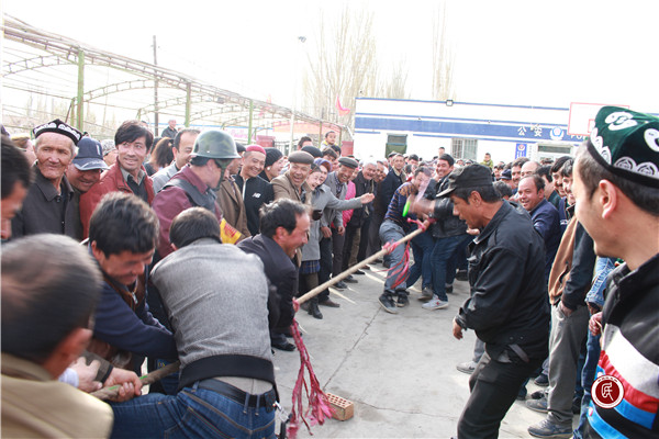 新疆民生网讯 (通讯员 马海伟)为丰富村民的业余文化生活,巴州运管局驻焉耆县四十里城镇店子村工作队利用周一升国旗活动举办了一次别开生面的拔河比赛。比赛得到了村民的积极响应,并带着极大的热情参加到此次比赛中来。随着一声哨响,只见两支队伍的队员抓紧绳子,一字排开,开始较量,经过几分钟的僵持后,一支队伍被拉了过去。赢得比赛的队伍立即欢呼起来,输了比赛的队伍也没有气馁,准备下一轮继续努力。整个比赛都在激烈、热闹、欢乐的气氛中进行。随后,工作队和村民进行了一场激烈角逐的篮球比赛,比赛输赢并不重要,重在参与、重在健身、重在友谊,重在团结,输和赢都是精彩!
