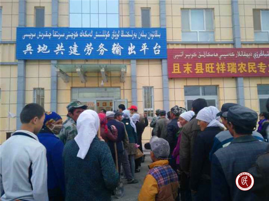 新疆民生网讯 (通讯员 安东)4月2日一大早,天刚亮一会,且末县奥依亚依拉克镇80余农牧民带着坎土曼铁锹等,来到兵地共建劳务输出平台黄楼门前,参加奥镇今年首次农牧民打工输出劳务启动仪式。农牧民们聚在一起,仔细倾听参加过2016年劳务输出挣上钱的农牧民兴奋热烈的交流自己的经验,对劳务输出挣钱充满了好奇和期望。