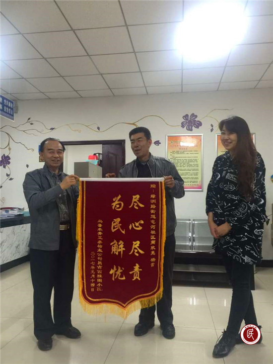 为此工作队队长和社区主任利用周末时间,与物业经理再次来到业主陈某家,做细致的调解,经过和风细雨、耐心交流下,双方达成意见,业主交清物业费,物业免去停车费,一桩物业矛盾就这样迎刃而解。在小区内仍有一些不交物业费的“老赖”,成为物业服务的纠结,社区一直帮助做了不少的协调工作。为此,物业公司经理激动地握着工作队长的手说:“社区、物业是一家,共同构建和谐家”,并为屯河社区送来了锦旗。