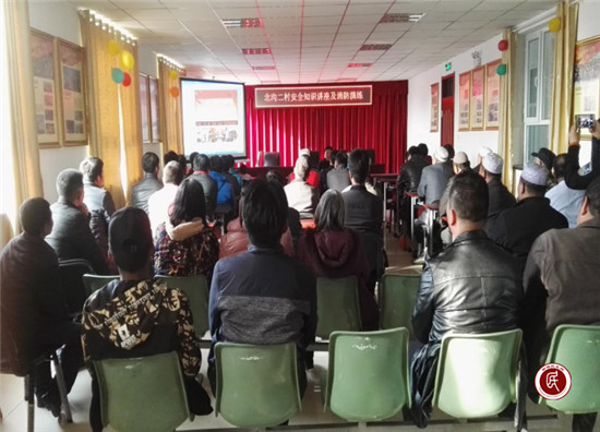 新疆民生网讯 (通讯员 祁恩冰)3月31日,昌吉市中山路街道北沟二村在村文化室院内开展了消防安全知识讲座和演练活动,本次消防演练共有60余人参加。活动中工作队队长高雅琳针对本村发生一起火灾案列“以案说法”,目的在于要不断的加强村民的消防安全意识教育,使村民从思想上引起高度重视,能够提高消防安全警惕,从自身做起,从身边做起。