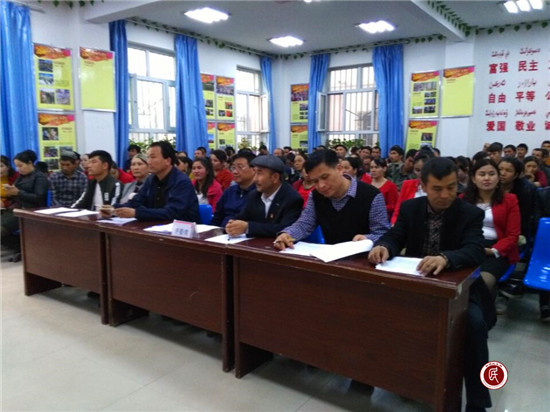 新疆民生网讯 (通讯员 冯君琳)为积极培育和践行社会主义核心价值观,加强公民道德建设,进一步提升拉帕村群众热爱家乡、建设平安和谐家园的信念,3月30日下午,自治区检察院驻拜城县赛里木镇拉帕村工作队组织开展了“第十六个公民道德建设月暨践行社会主义核心价值观”演讲比赛活动。拉帕村的苏麦亚•艾合买提、热孜万古丽努尔等8名群众参加了演讲,160余位村民观看了演讲比赛。