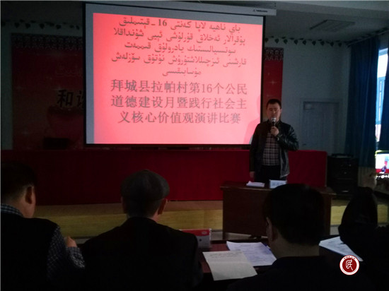 ---自治区检察院驻拜城县赛里木镇拉帕村工作队举办“第十六个公民道德建设月暨践行社会主义核心价值观”演讲比赛活动