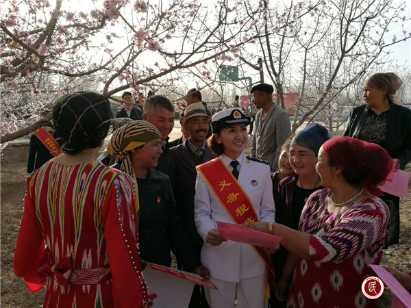 宣讲后,科比努尔还向各族群众发放了税收宣传资料。