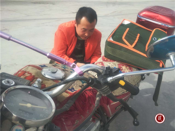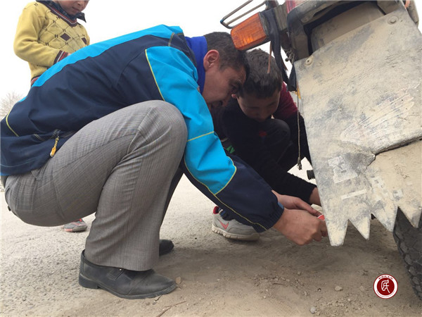 当队员牙生江将摩托车链条接好的一刹那,刚才还在推车行走的艾尼瓦尔小朋友喜上眉梢,与队员们告别后一溜烟走了。