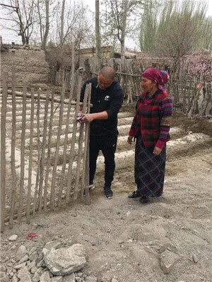 新疆民生网讯 (通讯员 张立强、刘凯)“阿恰(大姐),我来帮您修鸡圈、菜地围栏来了!”4月6日,阿克苏市库木巴什乡阿热买里村麦热木汗·萨吾提家菜园里迎来了一位“义务工”。原来是阿克苏市市场监督管理局驻库木巴什乡阿热买里村工作队队员刘凯,他自驻村以来,就与麦热木汗·萨吾提结成了亲戚。不一会儿,一排排整齐的用木头扎成的围栏整齐地排在了地上。