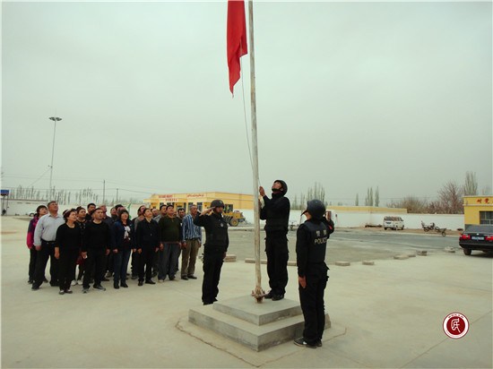 协警吐尔洪·图尼亚孜说:“中华人民共和国国旗是祖国的象征,是神圣不可侵犯的,我要时刻牢记,我从派出所回来后,在村警凯赛尔·库尔班尼亚孜的带领下,我一直严格要求自己,通过严格训练升国旗动作,现在升国旗动作规范了”。