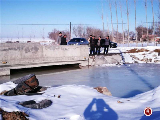 新疆民生网讯 (通讯员 赵颖)奇台县工商银行、农业银行、农发行、人民银行驻东湾镇根葛尔村工作队正式进驻当天,行李都没来得及收拾,就接到群众求助,五组的桥洞因结上了厚厚的冰,堵住了水道,严重影响排水,村民想尽了办法还是挖不动,任凭巨型“冰疙瘩”霸占通道。工作队获悉后,迅速来到现场实地勘察。