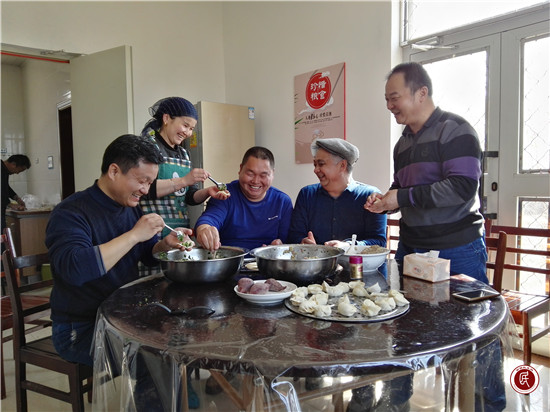 国网昌吉供电公司驻奇台县大泉塔塔尔族乡大泉湖村工作队为调节气氛,增强团队凝聚力,大家一起动手包饺子。调馅子,揉面团,欢欢喜喜地围聚在一起,热热热闹地擀面皮,大家分工明确,效率很高。工作队里的小伙子小秦说:我妈有一手好厨艺,年夜饭都是她一人操劳,饺子是妈妈最后一道“菜”,至今,我也没学习会包饺子,今天说啥也得学会,赶明儿,给我妈也包一顿饺子吃。队长仝新峰连忙鼓励说:“不要着急,万事开头难,多包包就好了,我给你做个示范。” 吃着热汽腾腾的像“大肚将军”、像“月牙船”、像“厨师帽”的饺子,大家你一言我一语品尝着饺子馅里的情致。