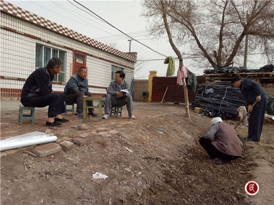 新疆民生网讯 (通讯员 陈虹秀)像往常一下,在经过了清晨一小时的集中学习后,玛纳斯县交通局、治蝗站工作队队员们又开始了一天的走访。当队员们走访到村干部肖怀玉家时,在菜地里干活的老父亲肖太勋一看到大家就赶紧起身把大伙往屋里迎。