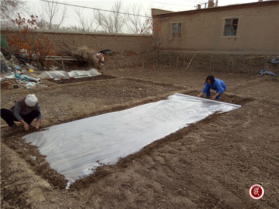 谢绝了老人家邀请进屋的好意,队长徐自虎拉着老人家坐在院子里拉起了家常,队员曹琰、陈虹秀直接往菜地走。在阿姨连声的“不用帮忙,不用,你们歇着……”的招呼声中,有模有样帮着平地、开沟、撒种子、埋土、压薄膜。就连和老人家拉着家常的队长都忍不住最终下地开起了边沟。