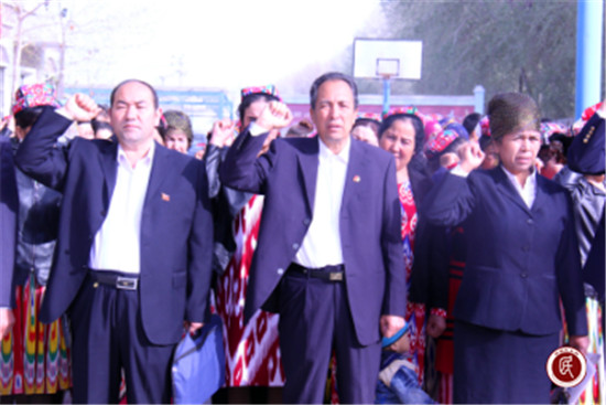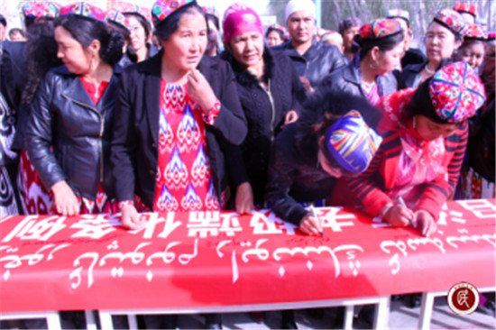 在集中宣讲后,组织村民进行了坚决抵御宗教极端思想渗透,维护社会稳定和长治久安的宣誓、签名活动。