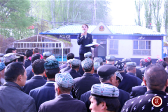 新疆民生网讯 (通讯员 陈国辉)4月10日,为全面做好农村宣传教育工作,认真落实陈全国书记关于加强宣传教育工作的重要讲话精神,阿克苏地区政协机关驻阿克苏市依干其乡良种场尤喀克乔格塔勒村“访惠聚”工作队在全体村民参加完升国旗仪式后,注重用当地“方言”、百姓语言,群众听得进、记得住的话扎实开展集中宣讲活动。