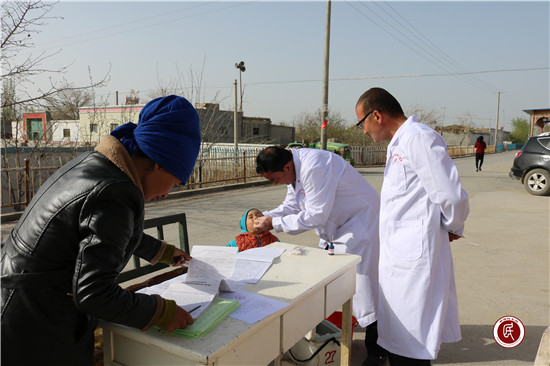 新疆民生网讯 (通讯员 徐元军  西热艾力·艾麦提)2017年4月10日清晨8:50时许,在阿热多斯库里村院内显得十分热闹,不时传出了一阵阵嬉笑声………这周星期一举行的升国旗仪式和上周星期一不同的是许多妇女都抱着小孩,升国旗仪式完毕后,妇女们抱着孩子,纷纷涌向村委会大门口。这时村级卫生室门口,整齐摆放着几张桌子和几个药箱,站着几位穿着白大褂的医生,原来这是准备为孩子们进行阿克苏市喀拉塔勒镇第二轮的脊髓灰质炎强化免疫接种工作拉开帷幕。