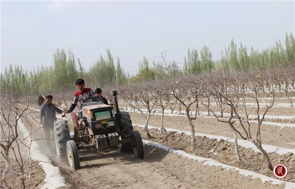 驻村工作队指导红枣地机耕导种棉花