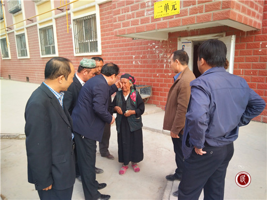 之后,村班子一行人又马不停蹄地看望了80多岁的孤寡老人毛莉托呼提·吞外库里。老人也是身患绝症好几年了,但老人家的精神状况不错,她乐观得说:有这么好的党和政府,我才不会轻易的“走”呢!老人家豁达开朗的一番语言,引得大家哈哈大笑,小区里不时传出朗朗笑声……