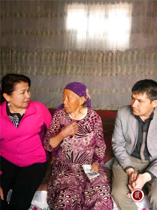 新疆民生网讯 (通讯员 郭坤、蒋波)4月7日,拜城县农机局驻拜城县大宛其管委会阿克塔木村驻村工作队与村干部来到二组70岁孤寡老人古瓦汗·艾买尔家中,送去了1010元帮扶金,及时帮助老人解决了因缺钱无法住院治疗的困境。