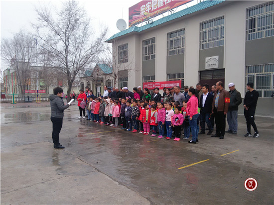 新疆民生网讯 (通讯员 李建朝) 2017年4月10日,本来这也许是一个平凡的周一,按照惯例由昌吉市住建局驻榆树沟工作队、村“两委”班子和全体村民举行“升国旗”仪式,却因为来了一些“特殊”的人而变得不一样。