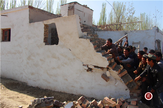 村里的青年志愿者们听说了老人要建新房但宅基地却腾不不出来这一情况后,商定在4月10日星期一参加完爱国主义教育--升国旗仪式后和递交入党申请书的年轻人们一起,为阿布吉力力老人拆除旧宅,盖新房做准备。烈日当头,大家汗流浃背,腰酸背痛,也毫无怨言。纷纷表示,能帮助到老人,感到无比高兴和自豪。