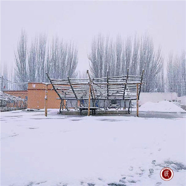 四月的拜城,已是万物复苏,新柳的嫩芽和含苞的桃花都争相登上这烂漫季节的舞台,雪也许不想静静的谢幕,抢镜般的回到了我们的视线中。小雪扰得气温虽然降低了不少,但是整个工作队的热情却十分高涨,队员们自发购买的慰问品,准备在这样一个雪天给村里“四老”人员送上本属于春天的温暖。