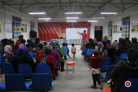 新疆民生网讯 (通讯员 白荣华)为进一步增加就业技能,拓宽致富门路。近期,莎车县荒地镇英巴格村(26村)组织16-45岁青年人进行就业技能培训。