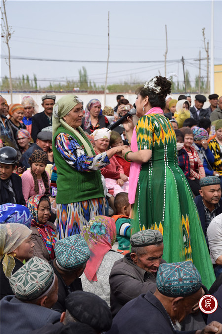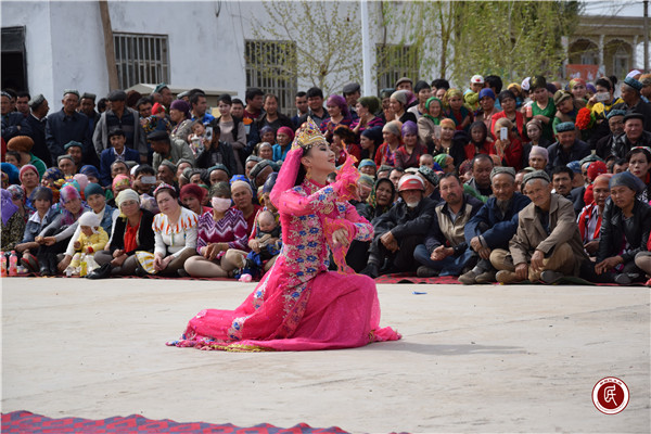 新疆民生网讯 (通讯员 陈虎)“再来一首,再来一首……”4月13日下午,新疆艺术剧院歌舞团“访惠聚”文化惠民演出小分队接地气的走进了库车县乌尊镇色根苏盖特一村进行文艺演出,面对热情高涨的村民,著名歌手买合木提·苏莱曼一口气唱了三首歌,村民仍然觉得意犹未尽。文艺演出当天,吸引了该村近700余名干部群众,文艺工作者们用美妙的歌声、优美的舞姿和精湛的演技为色根苏盖特一村广大村民准备了一场丰盛的文化盛宴。