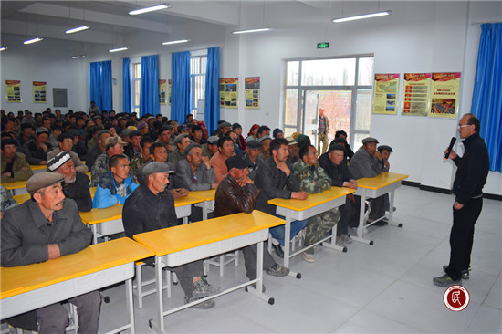 新疆民生网讯 (通讯员 方婷婷、刘冬 )4月10日,温宿县恰格拉克乡代甫台尔村召开村民大会,大唐新疆公司驻村工作队队长、村党支部第一书记赛地克力木·努拉木别克再次就2017年新疆全面取消农村义务工和“五统一”的惠民政策进行了通俗易懂的阐释。同时,引用大量事实,就宗教极端主义带来的危害和党的恩情向村民们进行了宣讲。