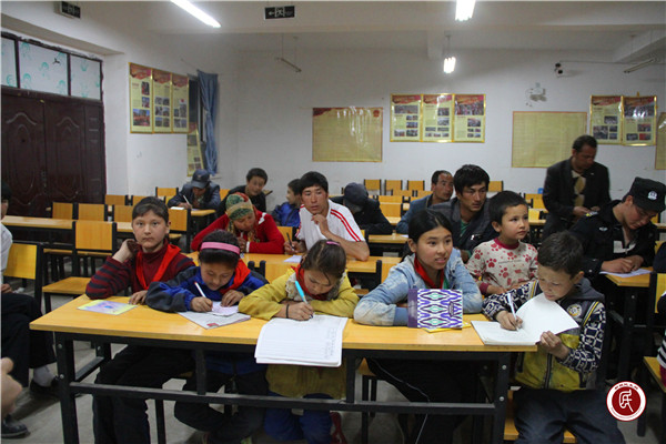 我们的课堂吸引了村里许多爱学习的小朋友,依力哈木·麦麦提(左一)在认真记笔记。