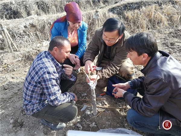新疆民生网讯 (通讯员 孙太保)三月中旬,正是各类果树嫁接的好时节,在一次走访中,村民阿合尼牙孜买买提正在自家门前的小果园里嫁接桃树,看到工作队过来,急忙扔下手中的工具,热情地和我们握手问好。看到一棵棵桃树被拦腰剪断,不懂林果技术的我们感到很惊讶,不解地询问阿合尼牙孜买买提为什么把这么好的树枝都剪掉了。阿合尼牙孜买买提看出了我们的疑惑,笑着给我们解释果树嫁接的有关技术,通过他的讲解,我们才知道原来又大又好吃的桃子的种植还有这么多“门道”。