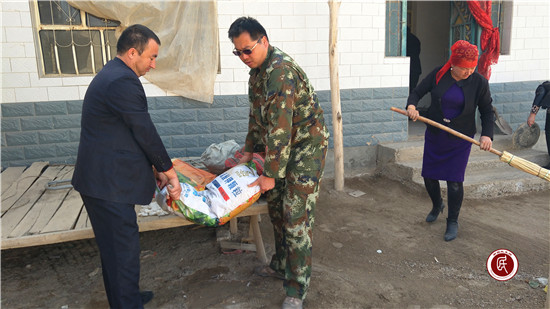 新疆民生网讯 (通讯员 刘姗)2017年4月12日,入户走访中,工作队发现村民莫明·依麻木尼亚家中的特殊情况后,当即决定给他捐款数百元,解决燃眉之急,并帮助他清扫庭院、清运垃圾、擦玻璃、拖地等,鼓励他要保持积极乐观的心态,克服当前的困难。