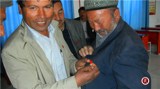 “这是我第一次带党徽,感觉很神圣,很有责任感。”村干部麦麦提·萨力高兴的说。