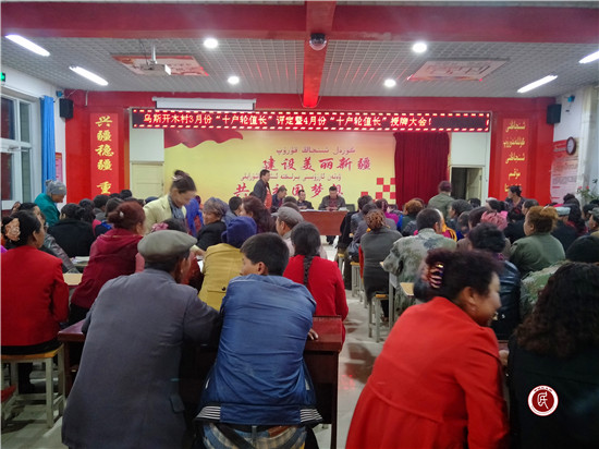 新疆民生网讯 (通讯员 王亚涛)为扎实推进“十户共管·十联共建”工作,进一步表彰先进、树立典型、引领带动“十户长”积极履行岗位职责, 4月11日由拜城县乌斯开木村党支部牵头,驻村工作队全力配合,组织召开了该村今年3月优秀“十户轮值长”评定暨4月“十户轮值长”授牌大会,全村有153位户主参加了此次大会,最终评定出6位3月优秀“十户轮值长”,并对4月16位“十户轮值长”进行了授牌。