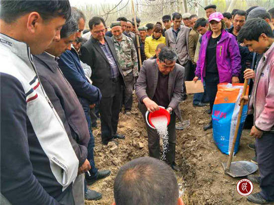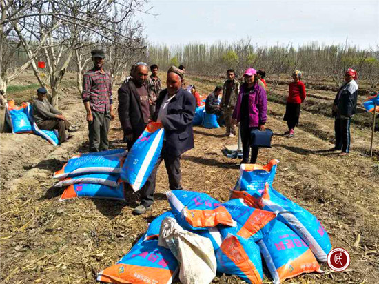 在前期农家肥的基础上,阿克苏地区畜牧兽医局又为20户示范园种植户免费发放优质高效复合肥4.5吨,用于示范园核桃树的增肥。